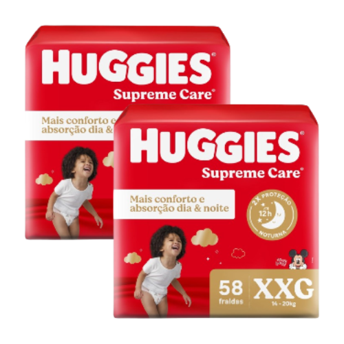2 Pacotes Huggies Fralda Supreme Care XXG 58 Unidades