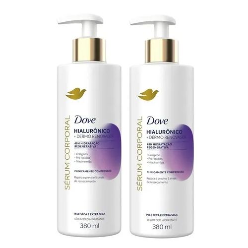 2 Unidades Dove Sérum Hidratante Corporal Hialurônico + Dermo Renovador 380ml