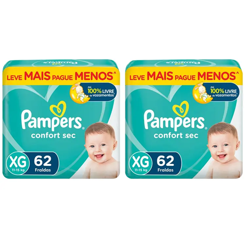 Pampers 2 Pacotes Fralda Confort Sec XG 62 Unidades
