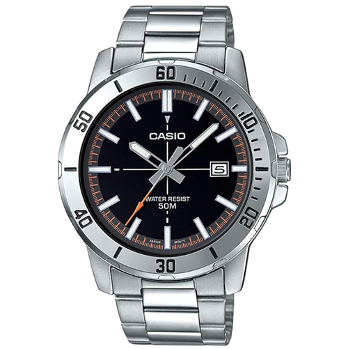Relógio Masculino Casio Prata Com Data Fundo Preto Original